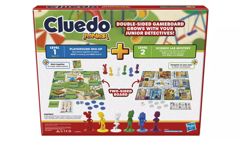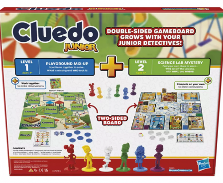 •2-IN-1 MYSTERY GAME: It's the mystery game that grows with your child! This Clue Junior game offers twice the fun with a double-sided gameboard, featuring 2 school-day mystery games and 2 levels of play