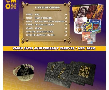 SHARED TO : 0 in stock 1850000 Enter Quantity 12345678910 Add to WishlistWeight: 4500 gAgesMax: 100 Ages : Players : - Game Length : CONTENT This Bundle Contain- Raids- Tower of Arkhanos- Railroad ink Blazing red Edition- Railroad Ink Promo- Amoeba DESCRIPTION CMON 20th Anniversary- Keychain- Sleeves Log in or register to post comments Comments