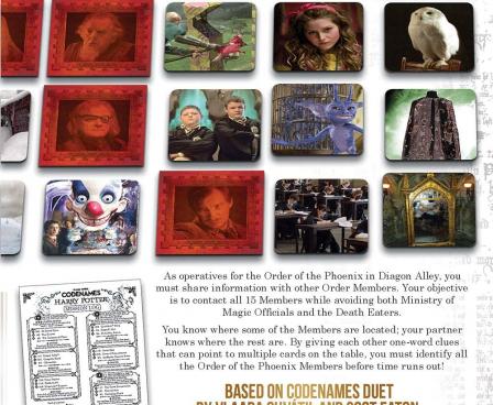 Codenames: Harry Potter features the gameplay from Codenames Duet, with players working together to reveal all the right cards before they run out of time or summon Lord Voldemort or another dark wizard.