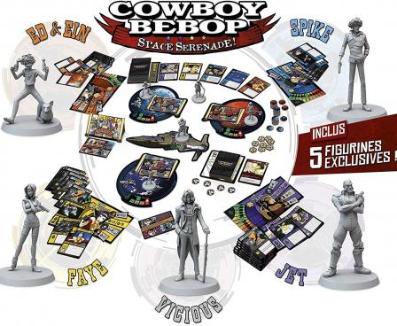 Cowboy Bebop: Space Serenade is a competitive deck-building game with 2 to 4 players in which you play one of the four members of the famous Bebop crew.