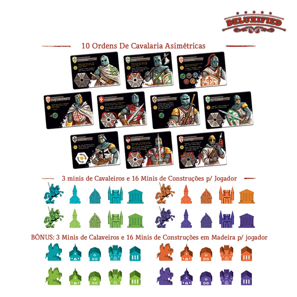 Move your knights, erect buildings, and go crusading to spread the influence of your Order. When the Orders get too strong, King Philip will become nervous and disband all Templar orders, ending the game.