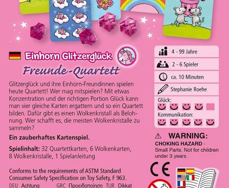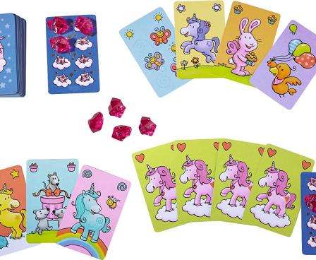 Glitterluck and her unicorn girlfriends are playing Quartets today! Who wants to join in? With a little concentration and the right amount of luck, you can collect four of the same cards to form a quartet. The reward is a cloud crystal. Who can collect the most cloud crystals?