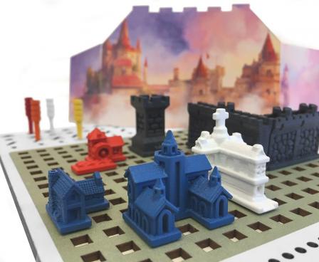 In Era, your dice represent different classes of medieval society as players attempt to build the most prosperous city. The "build" comes into play as players actually build their cities on their boards. You will use beautifully modeled three-dimensional components such as walls, keeps, farms, and other structures. By the end of the game, each player will have a unique city of their very own!