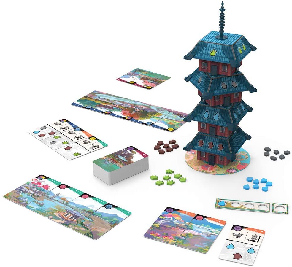 Players can finish panoramas by first laying groundwork cards, acquiring resources by turning the 3D pagoda, and allocating those resources to satisfy the requirements of each groundwork card. Once satisfied, a groundwork card becomes a landscape card. Multiple landscape cards laid in the correct order create a panorama. Each God has their own satisfaction meter which expresses their goodwill towards the gardens and their builders. Players try to please the Gods by completing landscape cards and finishing panoramas.