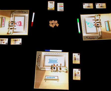 In Geometric Art , every round will exchange a guesser who guess questions. Each round there will be a theme. Within this theme, the artist can complete the artwork with the symbols specified above the dice. The guesser can guess the name of the artwork of every artist, If it's right, both get more rewards, but if guess wrong, both will be punished. Those who first get 10 points to win, but If you have too many penalty points, you will be eliminated.