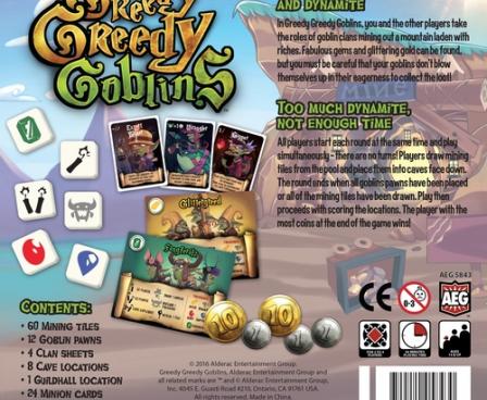 Players lead a clan of goblin miners who want to gather the most valuable collection of gems. Coins are scored for gem tiles on the mines you have claimed, with bonuses for dynamite tiles but if there is too much dynamite, the mine (and all the riches within) are destroyed!