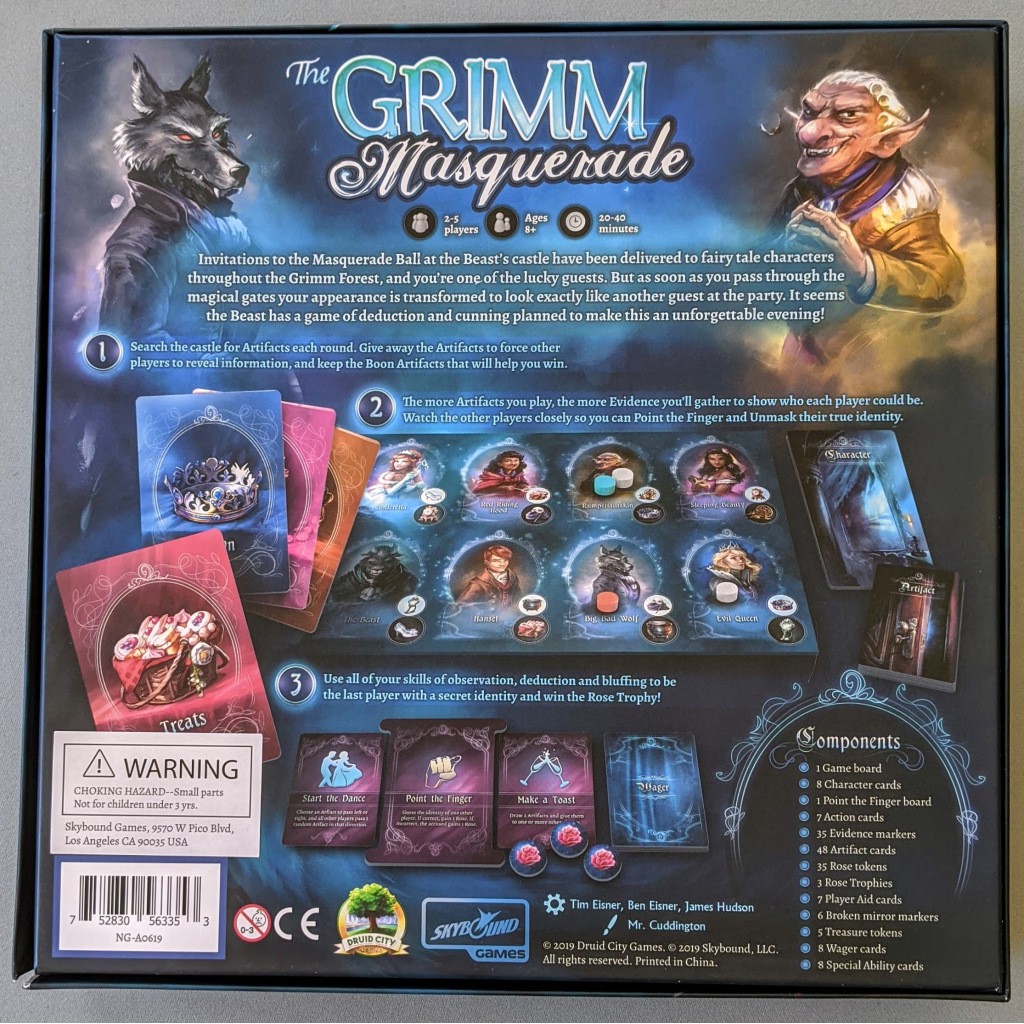 Don't worry if you are outed early, you take on the role of a Ghost, you get to guess what character you think will win the magical masquerade and if you are correct, you win along with them! You also take a turn handing out Artifacts to characters to try and sway the ball to your favor!