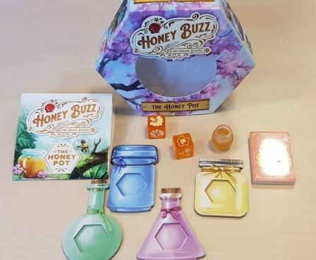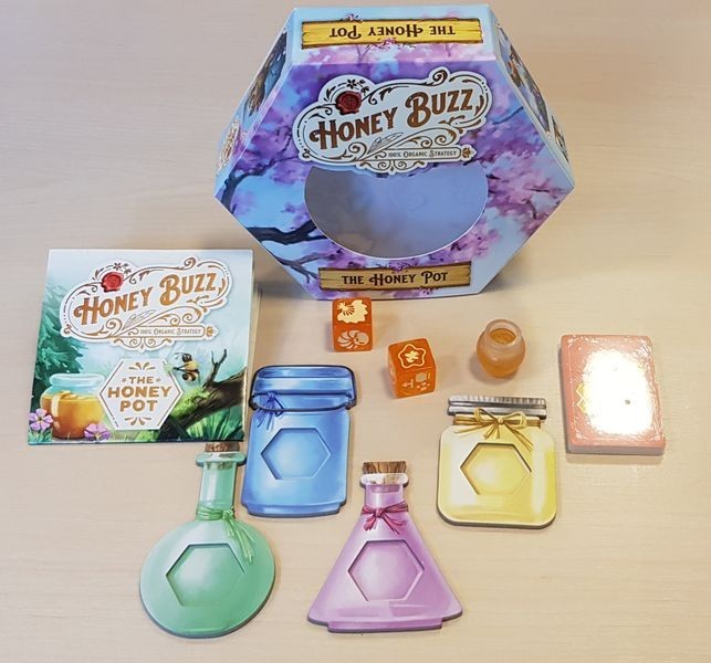 Limited edition, collectible Honey Buzz box, individually numbered, with deluxe linen finish and uv-glossed framing box sleeve (Kickstarter content)