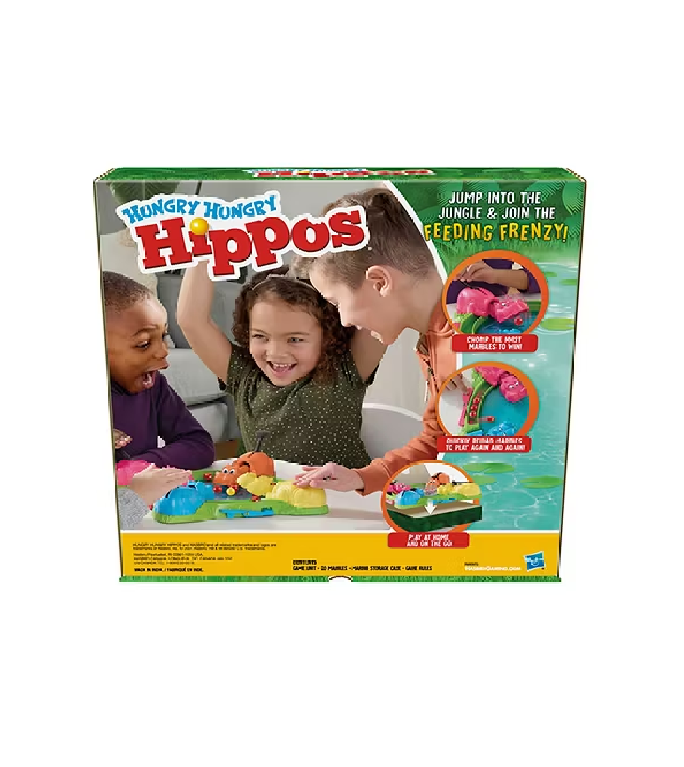 FUN FAMILY GAME: Remember playing the classic Hungry Hungry Hippos board game as a kid? This Hungry Hungry Hippos Launchers motorized game is great for kids' play dates, and rainy day entertainment