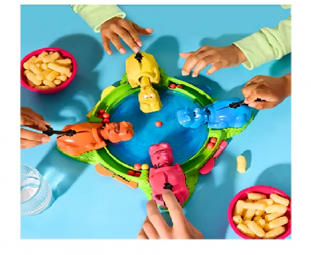 The Hungry Hungry Hippos Launchers game is a flippin' fast feeding frenzy as players launch plastic watermelons directly into their hippo's mouth. The motorized game unit has the hippos opening and closing their mouths while players continue to fling the melons, hoping to land the most shots. It's fun for kids to press and release the melons from the launcher, and watch each swallowed watermelon roll back down into the scorecard ramp. Like the classic Hungry Hungry Hippos game, this electronic game is fun for boys and girls ages 4 and up. Play it on rainy days, play dates, and Family Game Night.