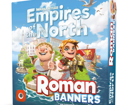 Imperial Settlers: Empires of the North – Roman Banners includes two new Roman decks and additional island cards.