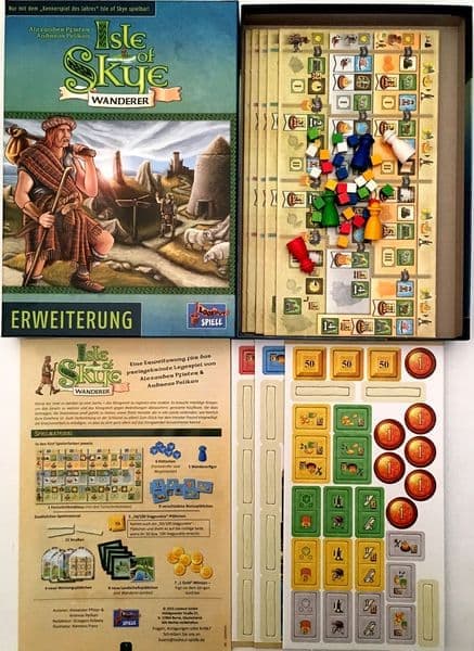 Isle of Skye: Journeyman, the first big expansion to Isle of Skye, contains new personal player boards indicating your progress in terms of strength, prosperity and popularity. As each progress step has requirements to be met, the personal player boards affect tile selling and placement. However, in order to claim the next level of development and gain potential rewards, it'''s not sufficient to place the corresponding tiles only. A new pawn (the journeyman) needs to travel the kingdom and "activate" the tiles. In addition, four new scoring tiles are contained respecting the new challenges of Isle of Skye: Journeyman.