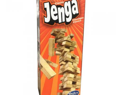 Includes 54 Jenga hardwood blocks, stacking sleeve with instructions