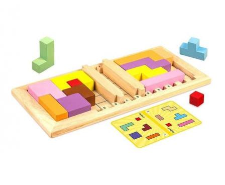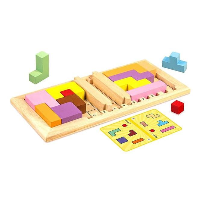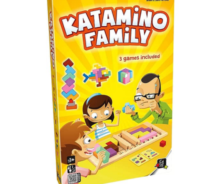 Katamino Family is a junior version of Katamino, with two players competing on separate game boards (or possibly one game board divided into smaller spaces) to fill all of the empty spaces first. The game is played over a number of rounds, with each round becoming progressively harder.