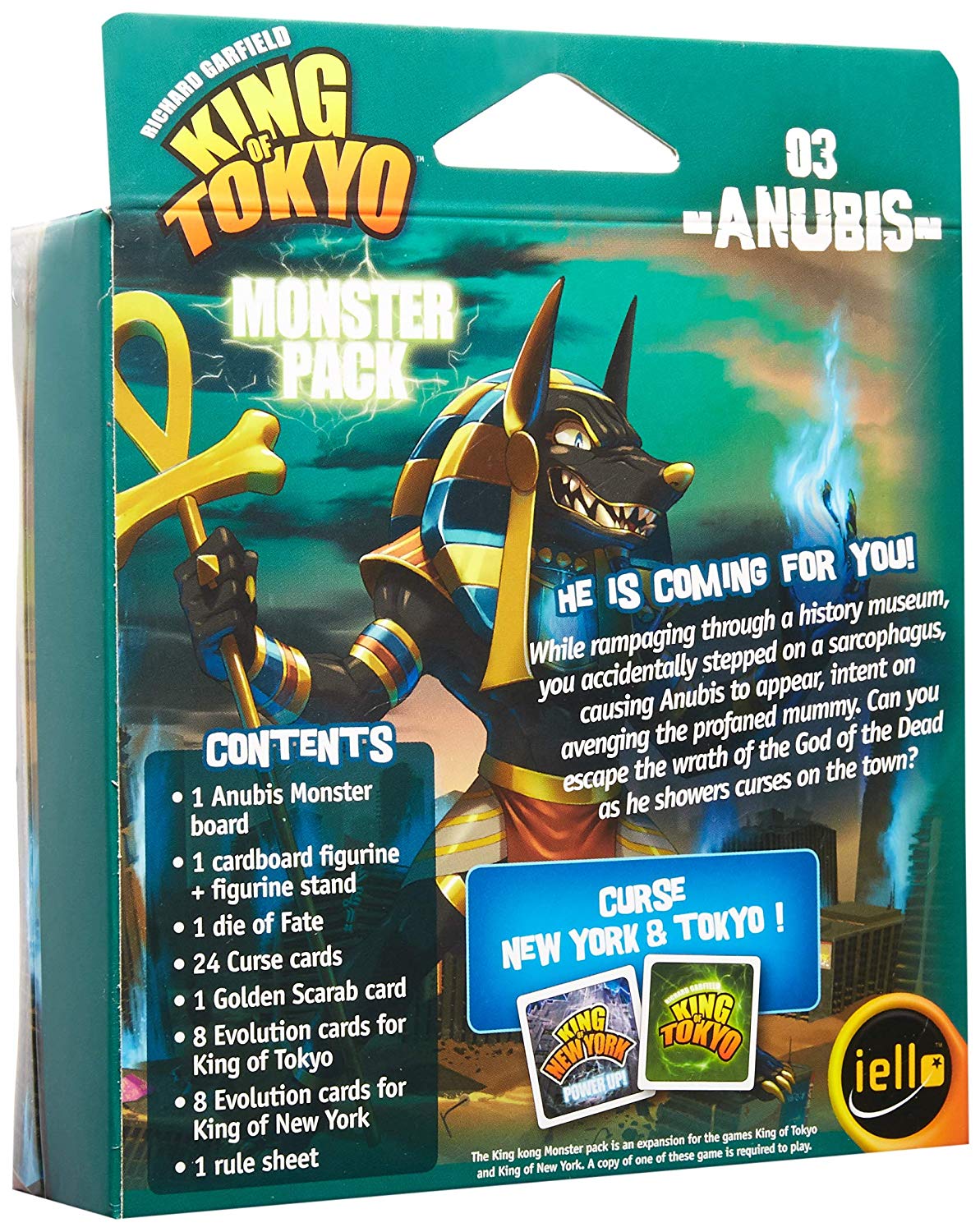 The Anubis Monster Pack is compatible with the King of Tokyo and King of New York base games and with all their expansions. The Anubis Monster Pack introduces a new game component in the form of the die of fate! You can use the die of fate in your games even if you play without Evolution cards or are not playing with Anubis.