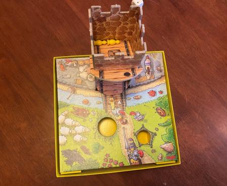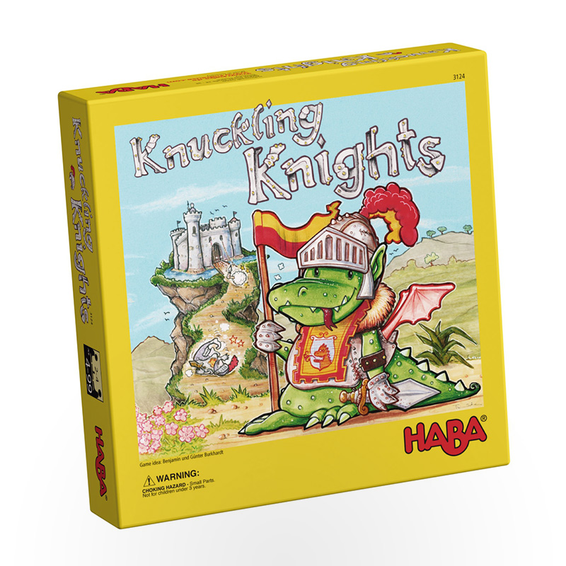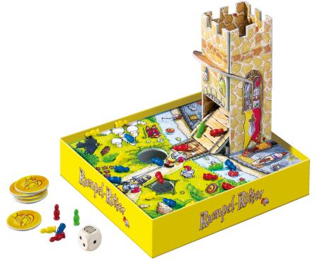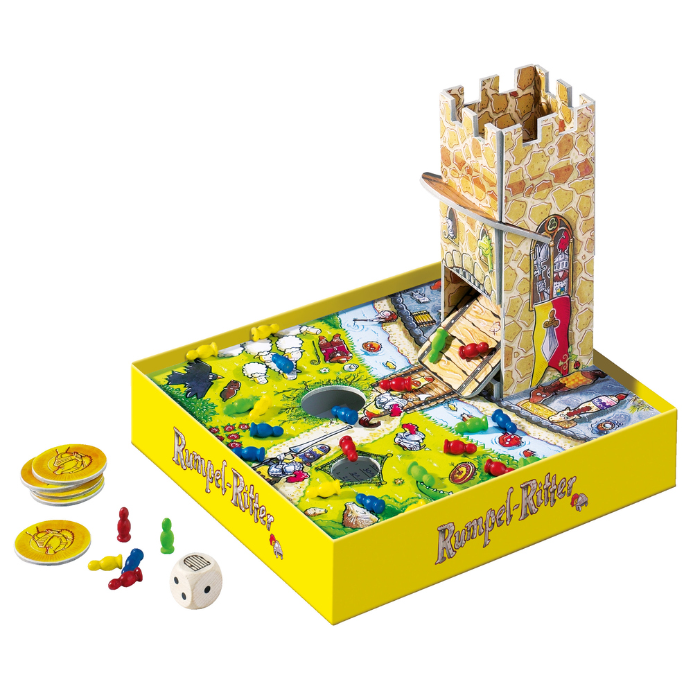 Everyone is talking about it all over the country! At the castle of King Benjamin, the bravest knights are taking part in the grandest tournament of all times. There is rumbling and thumping in every corner of the castle. One by one, the knights are thrown inside the castle. The die is thrown and whoever rolls the right symbol may open the door of the castle. The knights tumble out and some may fall into the deep pits, forcing this player's turn to end. Who will have the most knights at the end of the game?