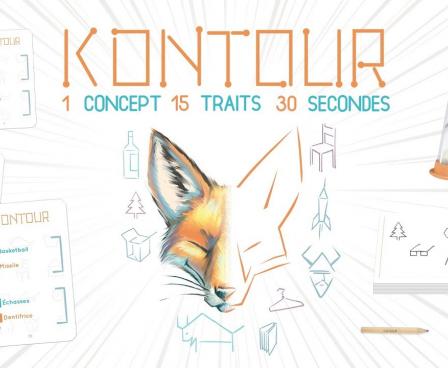 In Kontour, players try to make others guess a word or concept, but they have only 30 seconds and 15 strokes of the pencil in which to do it!