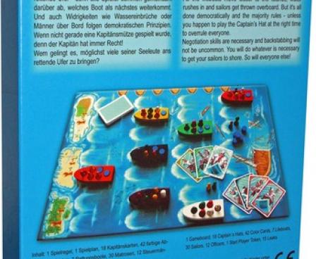 Also known as 'Rette Sich Wer Kann' ('Each Man for Himself') and often times referred to as 'The Lifeboat Game,' this pure negotiation game puts a different spin on the typical ocean catastrophe. There's been a boating accident, and a rag-tag group of six lifeboats is trying to make its way to one of several islands just over the horizon. However only one boat will make any forward progress in a given turn, so players try to convince everyone to vote for his particular favorite. To further complicate matters, the sailors can't seem to decide which boat they want to be in, so they're constantly jumping out of boats to swim to another one. As if all that wasn't enough, one of the boats springs a leak each turn. If the boat is at maximum occupancy when the leak occurs, then players vote to decide who to toss to the sharks!