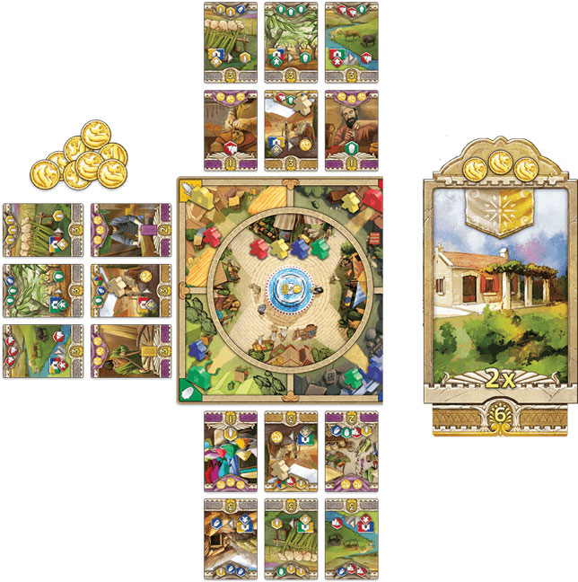 To achieve victory, you must manage the merchants in your bag and complement their abilities with the cards in your tableau. Traditional merchants produce basic resources, which are necessary to build your engine—but if you fail to convert your resources into coins, you will not be able to buy the most valuable cards! Thus, noble Lydian merchants—and their golden Lion coins—are the key to success. When enough properties are developed, the game ends, and a winner is declared!