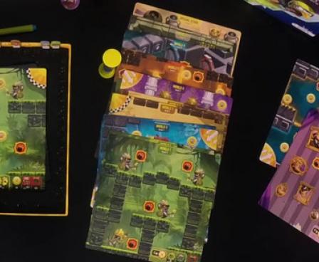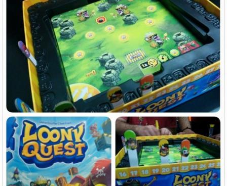 In the drawing game Loony Quest, players study challenging level cards, then try to replicate the outline to meet targets and avoid obstacles on their tracing sheets. Once finished, players place their sheets on top of the level card to see whether the drawings line up with the targets they meant to hit or avoid. Largely inspired by video games, Loony Quest players discover various worlds, play with 3D and 2D levels, run into loony monsters Loonies and big bosses, trigger special stages, collect bonuses, use penalties on opponents, and gather as many Xperience points as possible to win.