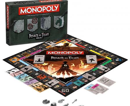 The face of humanity rests in the Attack on Titan edition of Monopoly as players travel the game board building walls and gates and assembling an elite squad to crush the titan threat and ensure the survival of mankind.
