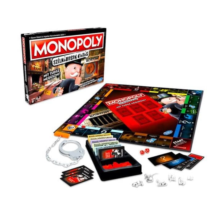 Make this wildly different Monopoly game a favorite go-to game for game nights and other fun get-togethers. Lean into those iconic (yet unspoken) Monopoly moments in which rules are bent, money is borrowed, and funny business is welcomed. The outlandish suggestions on the board, cards, and rules encourage players to express their inner cheater to own it all while they buy, sell, dream, and scheme. Fake a die roll, steal some bills from the bank, and even skip out on rent. Complete a cheat to get a reward, but fail a cheat and pay the consequences! No houses in this edition – only hotels – and pretend handcuff unit may leave players "chained" to the board. The Hasbro Gaming, Parker Brothers, and Monopoly names and logos, the distinctive design of the gameboard, the four corner squares, the Mr. Monopoly name and character, as well as each of the distinctive elements of the board and playing pieces are trademarks of Hasbro for its property trading game and game equipment.
