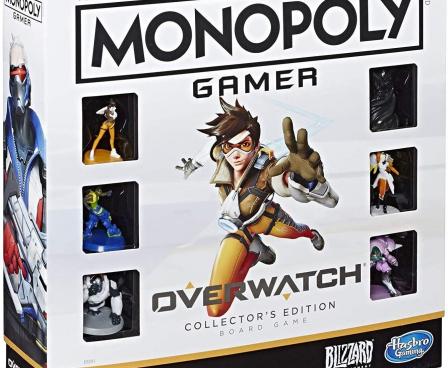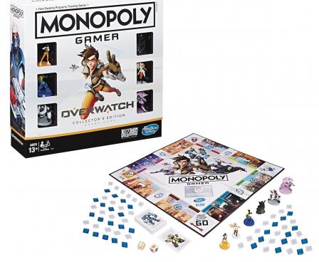 It's the Monopoly game for fans of Blizzard’s Overwatch! In the board game, each player drafts a team of 3, including a group leader, and then everyone battles for the high score to win! Players earn points by moving around the board capturing objectives and collecting Loot Boxes. The Monopoly Overwatch Collector's Edition includes a game board, 6 character tokens, 6 group leader cards, 16 objective cards, 9 Loot Box cards, 4 reminder cards, 1 numbered die, 1 ability die, 90 plastic HP chips (50 fives and 40 ones), a premium box, and a Game Guide.