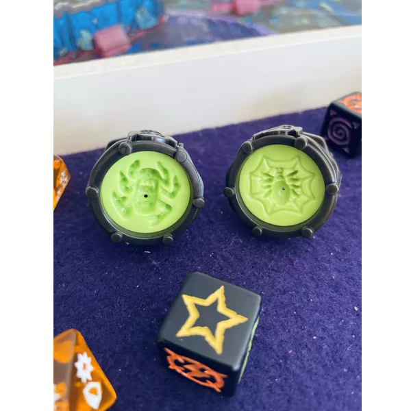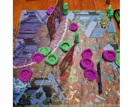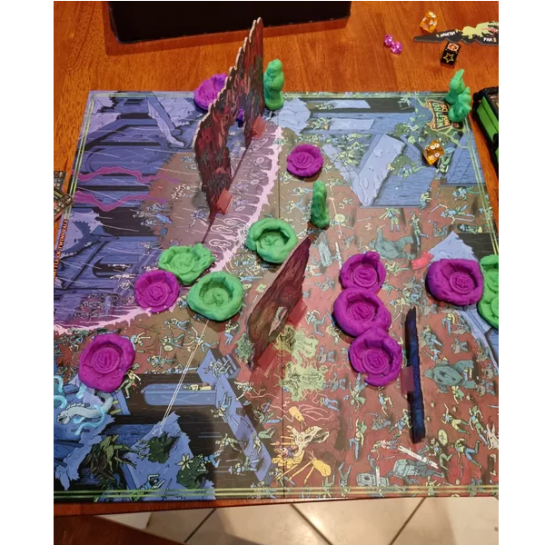 In Necromolds: Monster Battles, players build and battle golem armies using their Necromold spellbooks and containers of spell clay. The stronger the monster, the more clay it demands - so build your army wisely! Roll and assign your command dice each round to determine when monsters move and fight. Roll your combat dice to resolve monster battles, leaving the defeated monster smashed on the battle map!