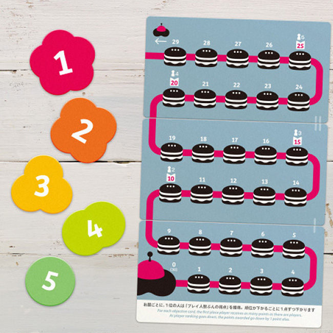 At the start of a round, three scoring cards are revealed, such as most aliens on a single road, most dogs visible, or longest road. All player then race to assemble their town in whatever pattern seems best, trying to score points for one, two, or three of the scoring cards as they wish. As soon as the first player decides that they're done, they flip the sand timer and everyone else has 90 seconds to complete their town, then players determine who scores for which cards, with ties being broken in favor of whoever finished first. Players score points based on the number of players in the game, and players track their score on a chart over multiple rounds.