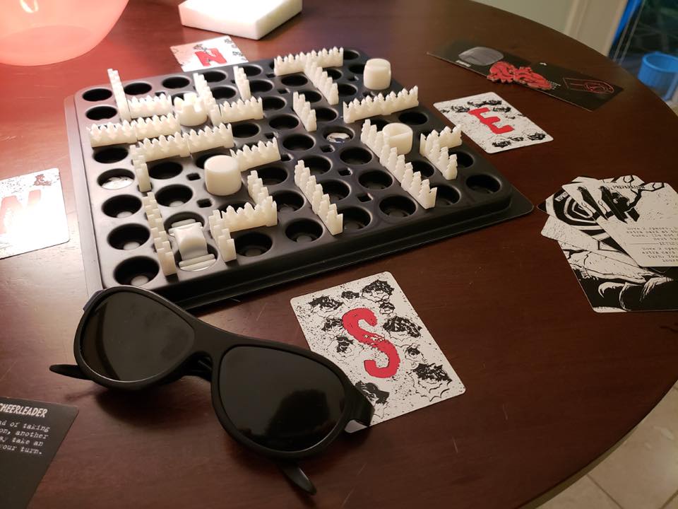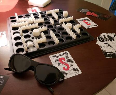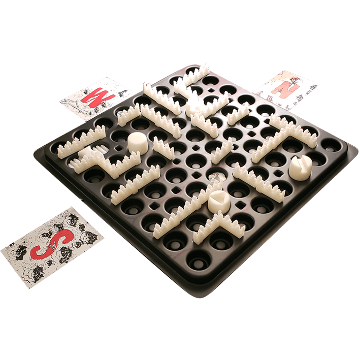 In more detail, Nyctophobia is a cooperative tactile maze game for 3 to 5 players. All but one of the players play the game completely unable to see the board. The blinded players make up the Hunted team. They are tasked with finding the car space on the board and surviving until the police arrive to rescue them. The sighted player is the Hunter, who is tasked with chasing down the Hunted and reducing one of the Hunted to zero health before the police arrive.