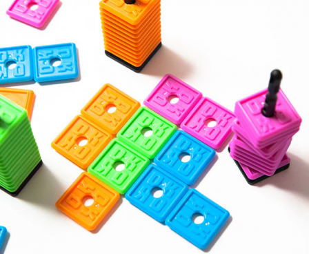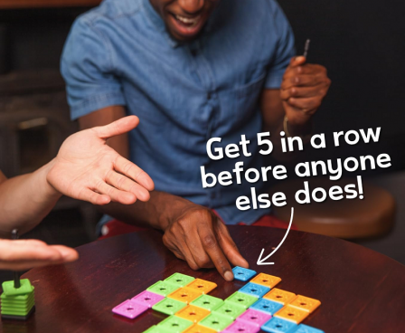 TILES AT THE READY: Choose a colour, grab your stack and start laying down tiles until someone sneaks a line of five, either horizontally, vertically or diagonally.