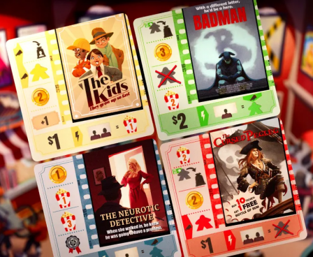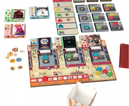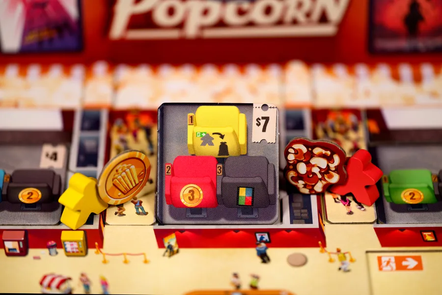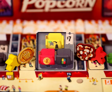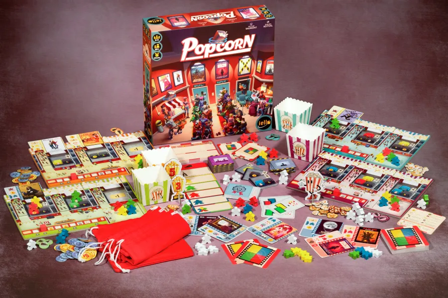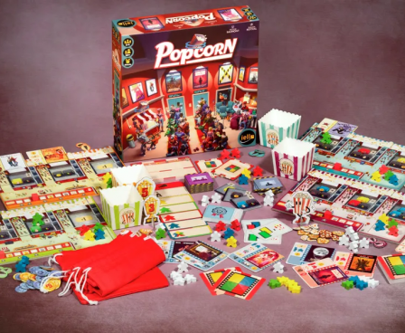 In Popcorn, each player manages their own movie theater and tries to show the best combination of movies in order to attract guests to their seats.