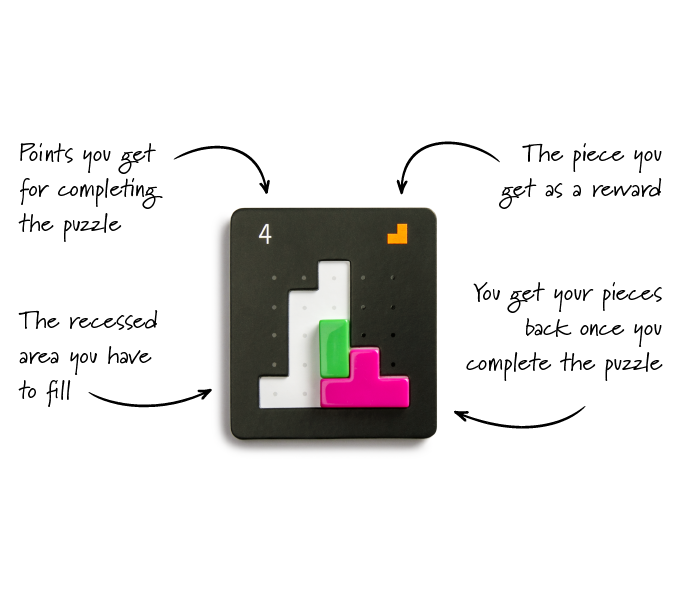 The core of the game lies in using your pieces to complete puzzles. Starting with just two basic pieces, you use three actions every turn to develop a powerful engine. With more pieces of various types, you can efficiently complete even the most difficult puzzles. The puzzles you complete award you points or new pieces to further fuel your engine. Can you outsmart your opponents?
