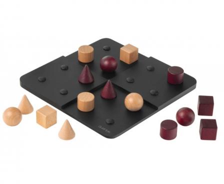 Each turn the players will put one of their pieces on the boardgame. It's forbidden to put a shape in a line, a column or an area on which this same form has already been posed by the opponent. We can only double a shape if we have played the previous one ourself. The first player who places the fourth different form in a row, column or zone wins the game immediately, no matter who owns the other pieces of that winning move.