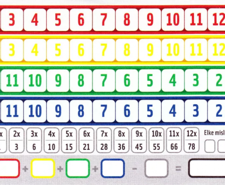 Qwixx is a quick-playing dice game in which everyone participates, no matter whose turn it is. Each player has a scoresheet with the numbers 2-12 in rows of red and yellow and the numbers 12-2 in rows of green and blue. To score points you want to mark off as many numbers as possible, but you can mark off a number only if it's to the right of all marked-off numbers in the same row.