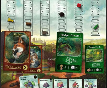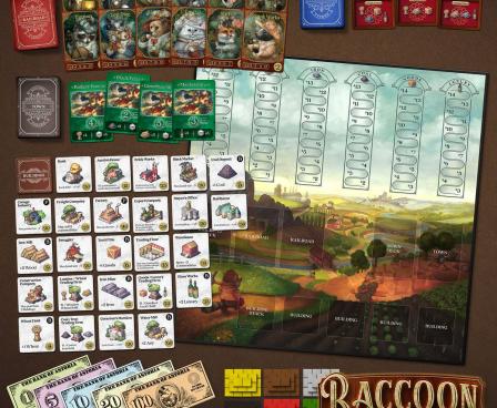 In Raccoon Tycoon, players try to produce the most valuable commodities in an ever-changing marketplace. They then use those commodities to build towns or sell them at the best price to secure great profits that can be used to win auctions for the all-important railroads. The profits may also be used to buy powerful buildings that give the players power-ups or bonuses in production. Owning the best towns and railroads determines victory. There can be only one "top dog" in Astoria. Is it you?