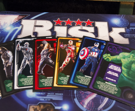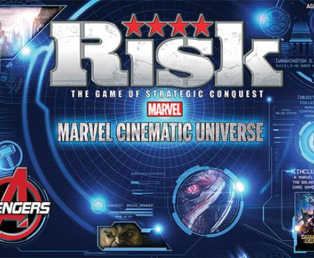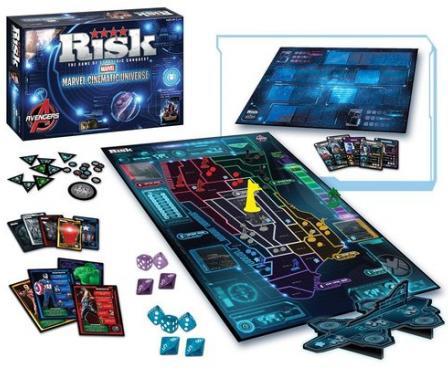 - 2-sided game board; one side for Marvel Cinematic Universe Risk and one for Guardians of the Galaxy stand alone card & dice game