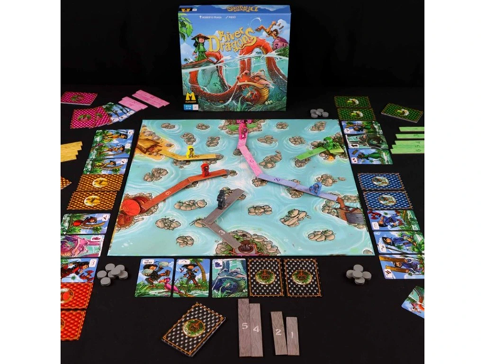 The 2012 edition of the game, River Dragons, includes a double-sided game board not present in earlier editions, with one side of the board featuring rock piles on which you place stones (as in the original Dragon Delta), while the other side has a featureless river on which players can place stones in any location.