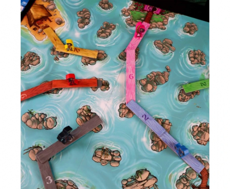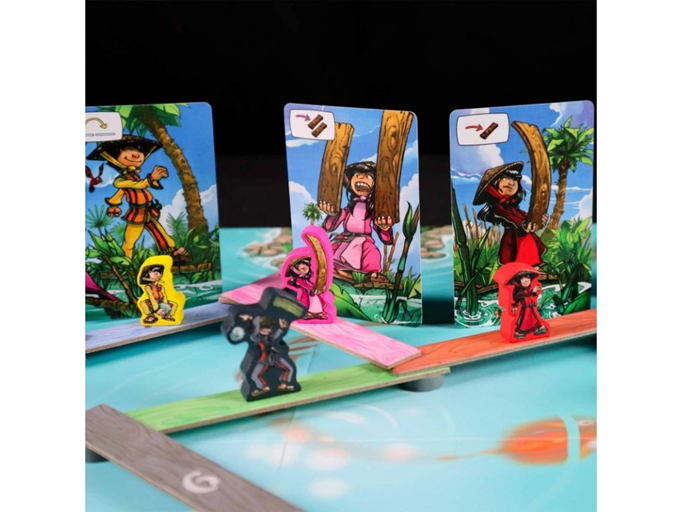 In Dragon Delta, you want to move your pawn over a system of bridge-like planks to the other side of the board. An easy task! Or at least it would be if everyone were working together, but alas you're not. Instead you're all working on your own right next to one another, each convinced that your way is best.