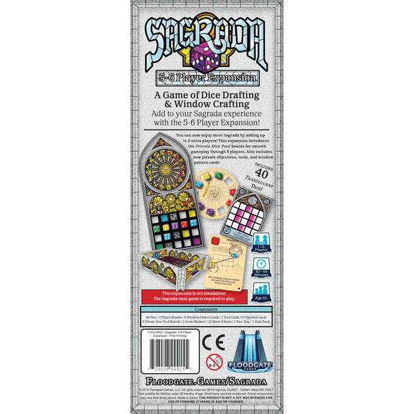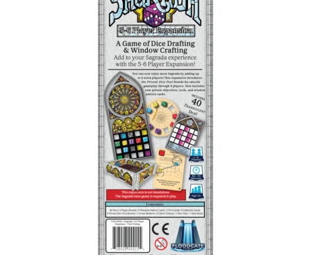 You can now enjoy more Sagrada by adding up to 2 extra players! This expansion introduces the Private Dice Pool boards for smooth gameplay through 6 players. Also includes new private objectives, tools, and window pattern cards.