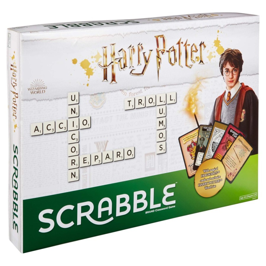 With this special edition game, Scrabble celebrates the unique vocabulary from the world of Harry Potter and his friends. Like Original Scrabble, this game comes with a board, 4 racks, bag of tiles, and instructions. But Harry Potter Edition of Scrabble also includes a special glossary for players to find wizarding words they can play with their Scrabble tiles. When a player forms a word on a Hogwarts space, that player gets to draw a magical card that can help score more points. Game includes a deck of 36 Hogwarts cards that bring even more magic to the game. Fans of the Seven Books and Eight films in the Harry Potter Universe will love this special Scrabble game—but it won’t be around for long .