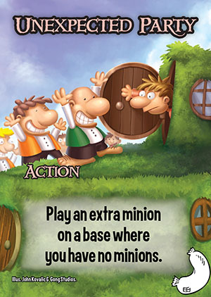 During play, Base cards (each with their own difficulties and abilities) are in play. You attempt to have the most power on the Base from your minions when the Base is smashed because when that happens each player in first, second and third place scores points.