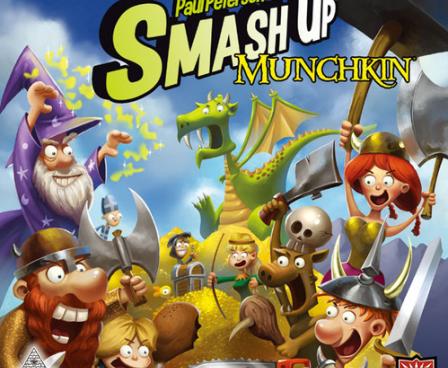 Smash Up: Munchkin is a Munchkin-themed version of Smash Up. There are eight factions; Clerics, Halflings, Orcs, Warriors, Elves, Thieves, Dwarves and Mages.