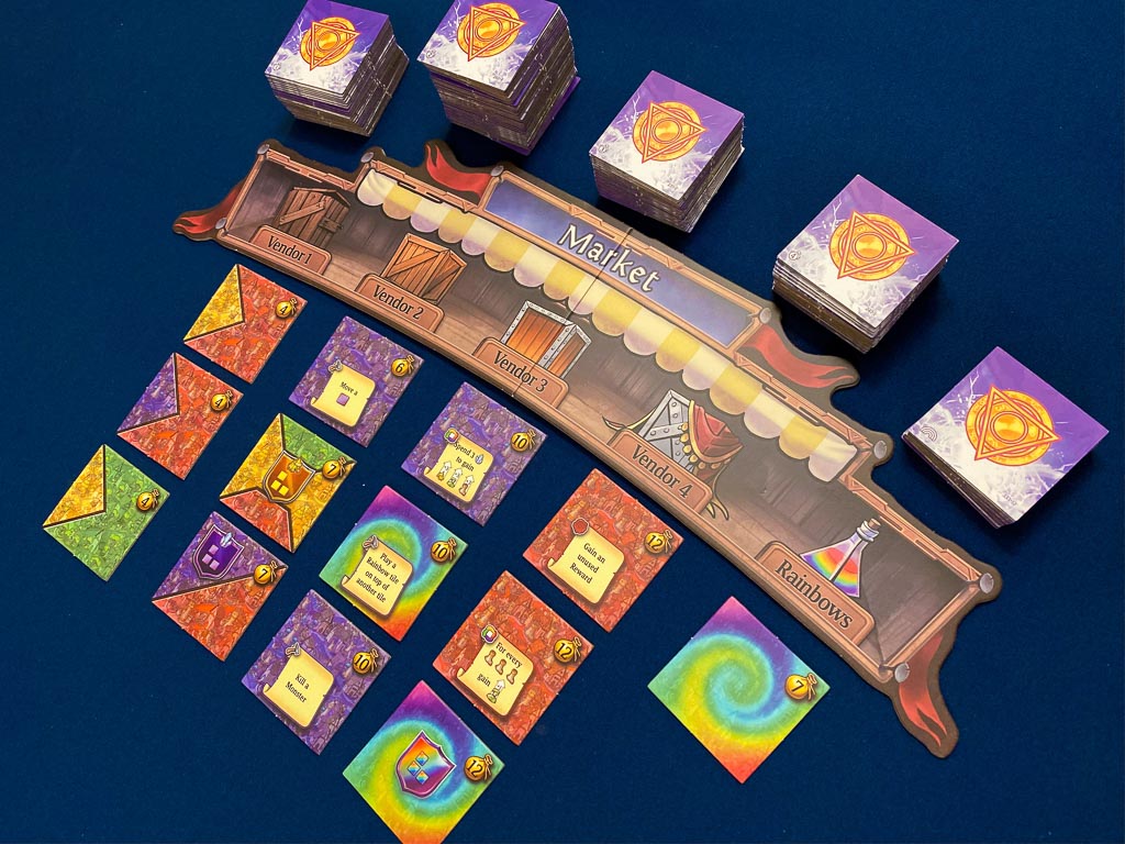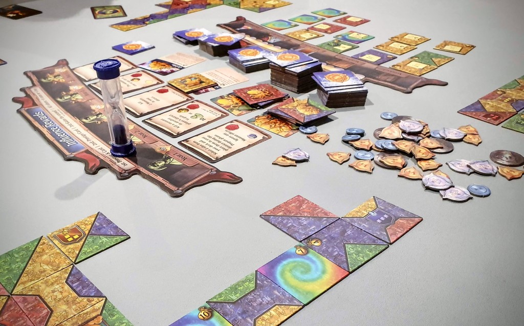 Every player starts Sorcerer City with a set of tiles, and in each round you have two minutes to build your city as optimally as you can. In between rounds you buy new tiles to add to your pool and gain other rewards. Beware though, monsters are lurking and will also be added to your deck, no doubt adding some chaos to your plans in the following rounds. After five rounds, add up all the victory points to see who is the master sorcerer builder!