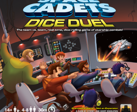Space Cadets: Dice Duel the "Team vs. Team, Real-time, Dice-Rolling Game of Starship Combat!" pits two spaceships against one another in quick-paced combat. The players are divided into two teams, each team playing the crew of a ship and winning or losing together based on how well they perform. The game ends when one side destroys their opponent by causing four points of damage through torpedoes or mines. Each ship has six Bridge Stations: