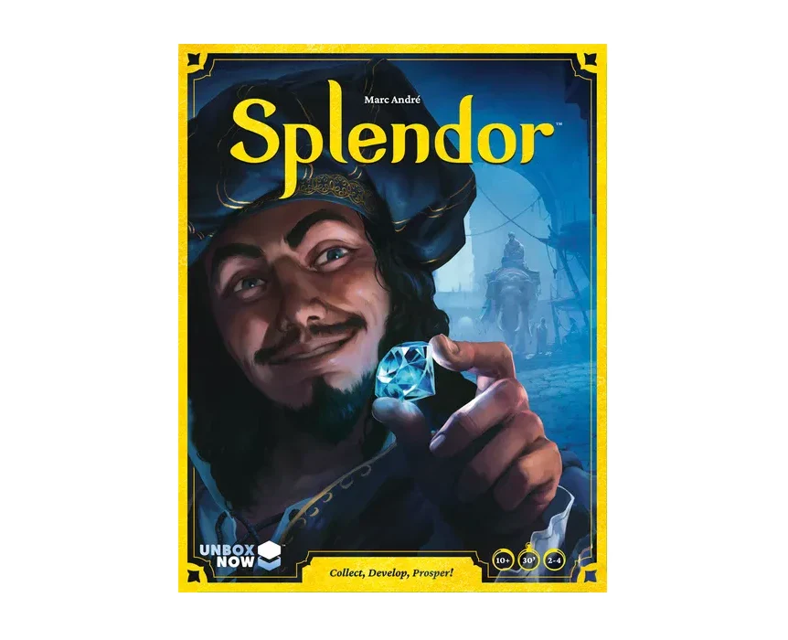 Splendor is a game of chip-collecting and card development. Players are merchants of the Renaissance trying to buy gem mines, means of transportation, shopsall in order to acquire the most prestige points. If you're wealthy enough, you might even receive a visit from a noble at some point, which of course will further increase your prestige.