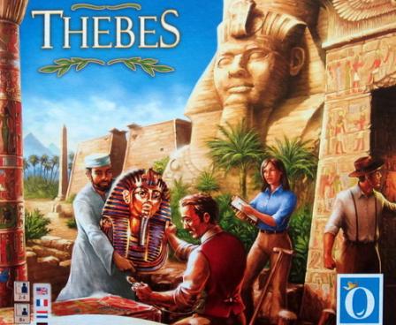 Thebes is a game of competitive archeology. Players are archaeologists who must travel around Europe, northern Africa, and the Middle East to acquire knowledge about five ancient civilizations -- the Greeks, the Cretans, the Egyptians, the Palestinians, and the Mesopotamians -- and then must use this knowledge to excavate historical sites in the areas of these civilizations. Through the course of the game, expositions are revealed, and an archaeologist who has treasures from the requisite civilizations may claim the prize (this is a change from the first edition's handling of exhibitions). The archaeologist who learns the most about the civilizations, claims the greatest-valued artifacts, and collects the most exhibitions will win out over his or her colleagues.