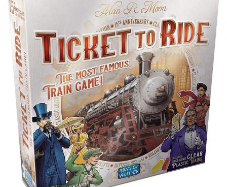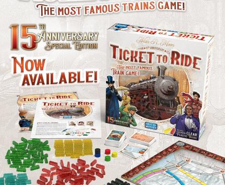 First published in 2004, Ticket to Ride has won multiple international awards since its release. Discover this classic in a special 15th Anniversary edition that includes 5 exclusive sets of clear plastic trains and a 4-page retrospective booklet featuring the history and creation of the game.
