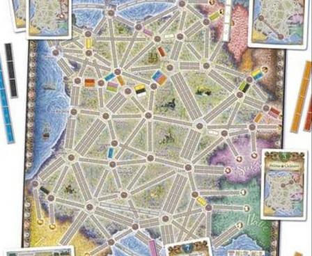 In the France half of this expansion, 2-5 players collect train cards and claim routes in order to complete tickets in hand, but most of the tracks on the board aren't colored! Each time that you draw cards, you must take a colored tile that's 2-5 train cars long and place that tile on an empty track bed. Once you've done this, any player can claim that route by discarding the appropriately colored cards from hand, as in any other Ticket to Ride game. (Single-length routes are already colored, and the map contains a number of gray-colored ferry routes.)