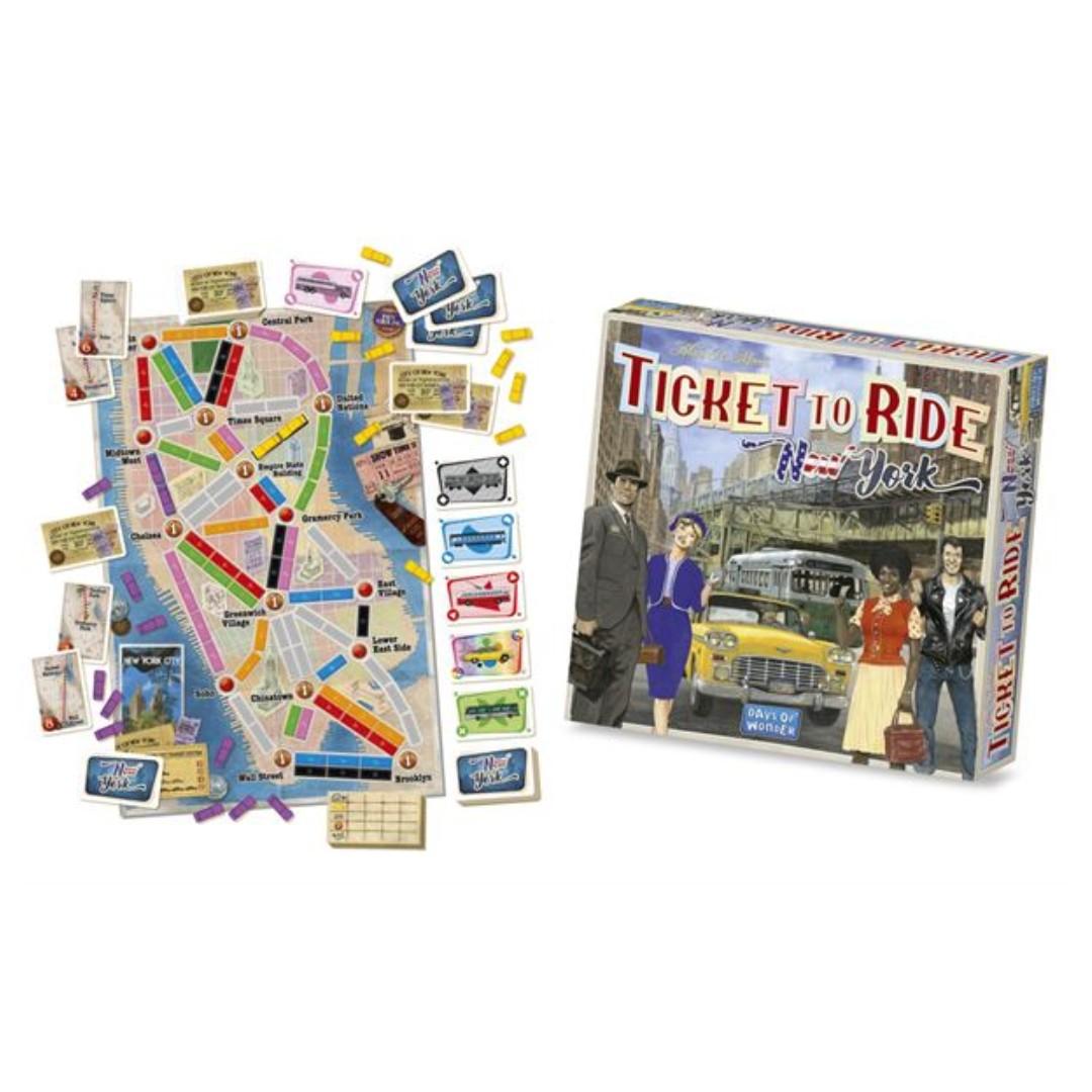 Ticket to Ride: New York features the familiar gameplay from the Ticket to Ride game series — collect cards, claim routes, draw tickets — but on a scaled-down map of Manhattan that allows you to complete a game in no more than 15 minutes.